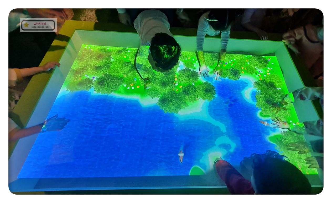 이곳에서 동물을 색칠해서 스캔하면 큰 화면에서 자신이 색칠한 동물을 만날 수 있습니다.