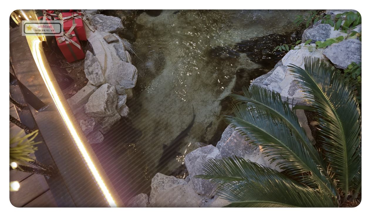 천장이 높아서 개방감이 있고, 물이 흐르는 공간에 철갑상어들이 살고 있어서 아이들이 좋아했습니다.