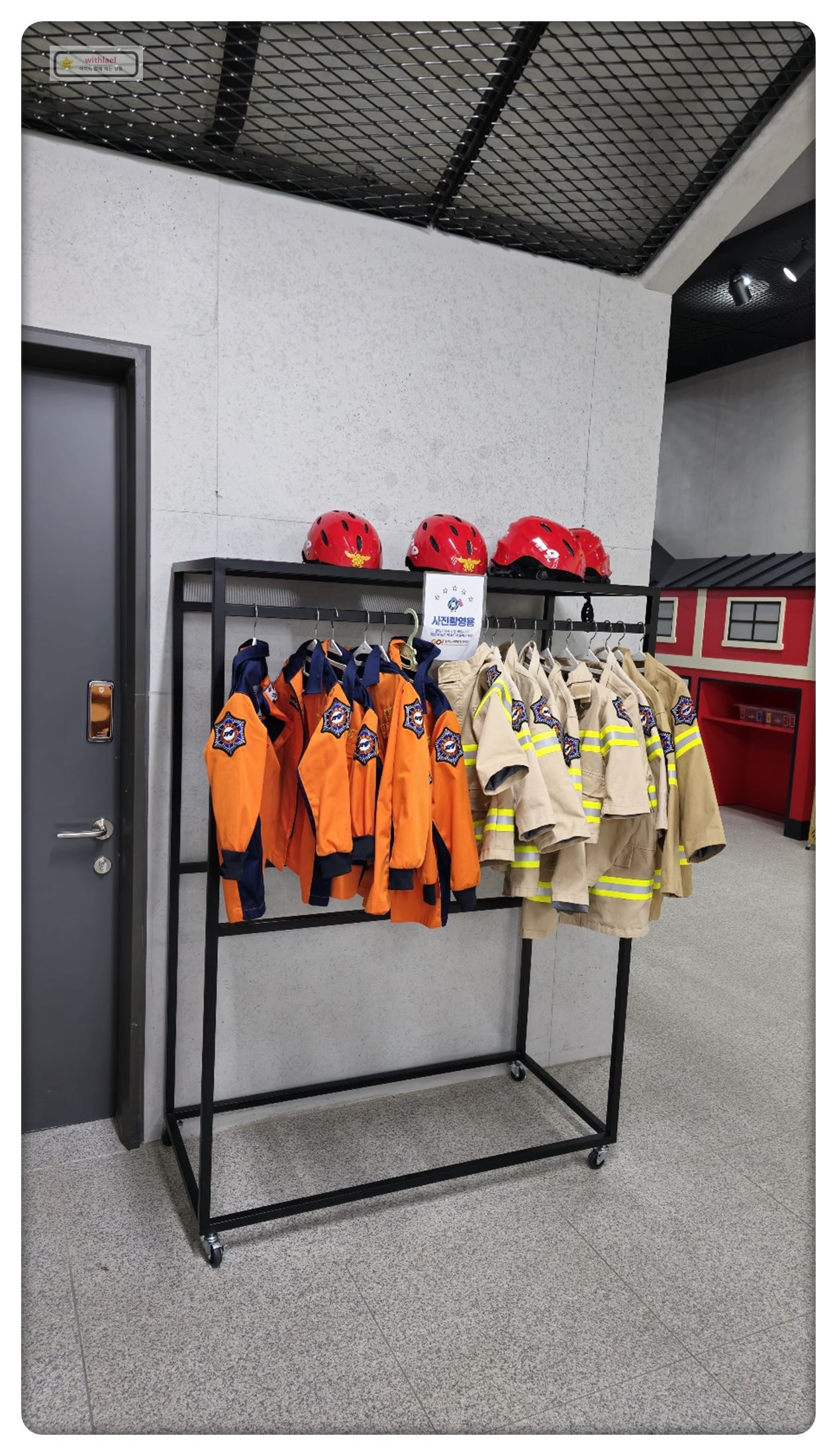 유아들이 소방관 옷을 입어볼 수 있는 곳입니다.