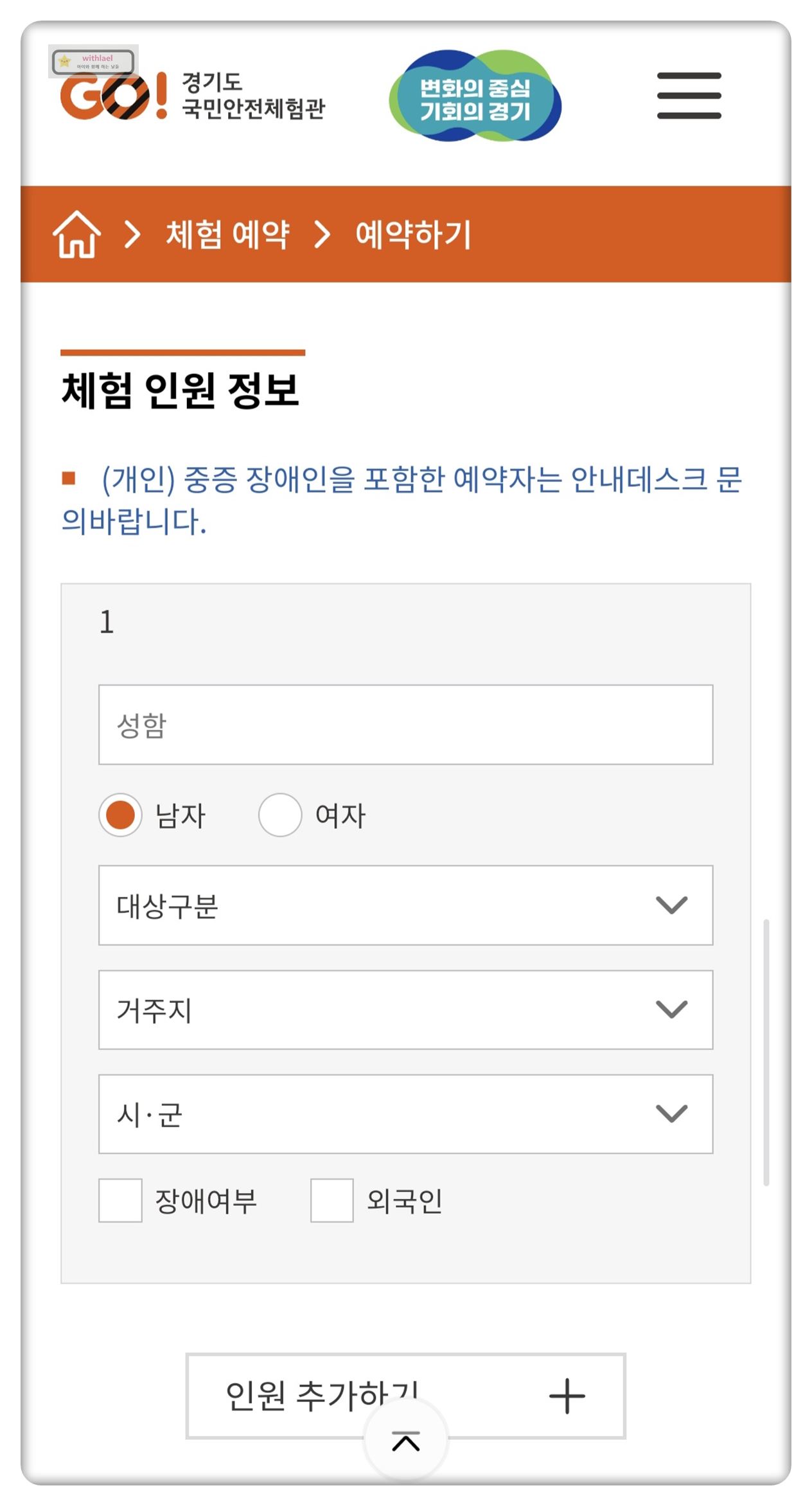 인원 추가하기를 누르면 여러 명을 함께 예약할 수 있습니다.