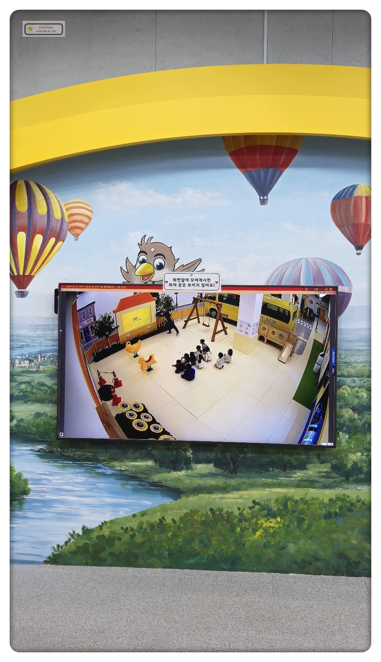 체험장에는 부모님이 함께 따라 들어갈 수 없지만, 이렇게 TV로 아이들이 무엇을 하는지 지켜볼 수가 있습니다.