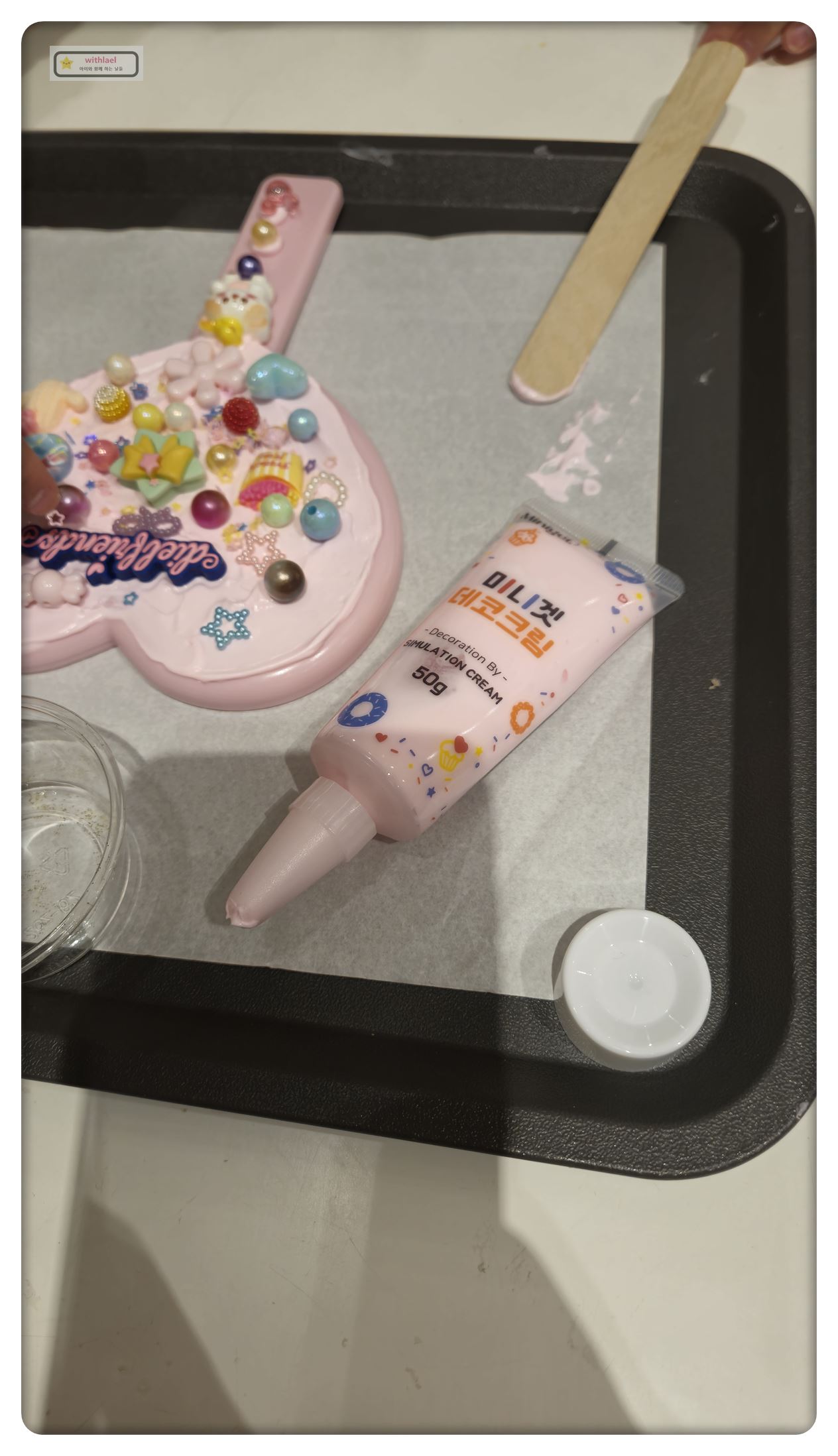 저희 아이가 고른 거울이 분홍색이어서 그런지, 분홍색 데코 크림을 주셨습니다.