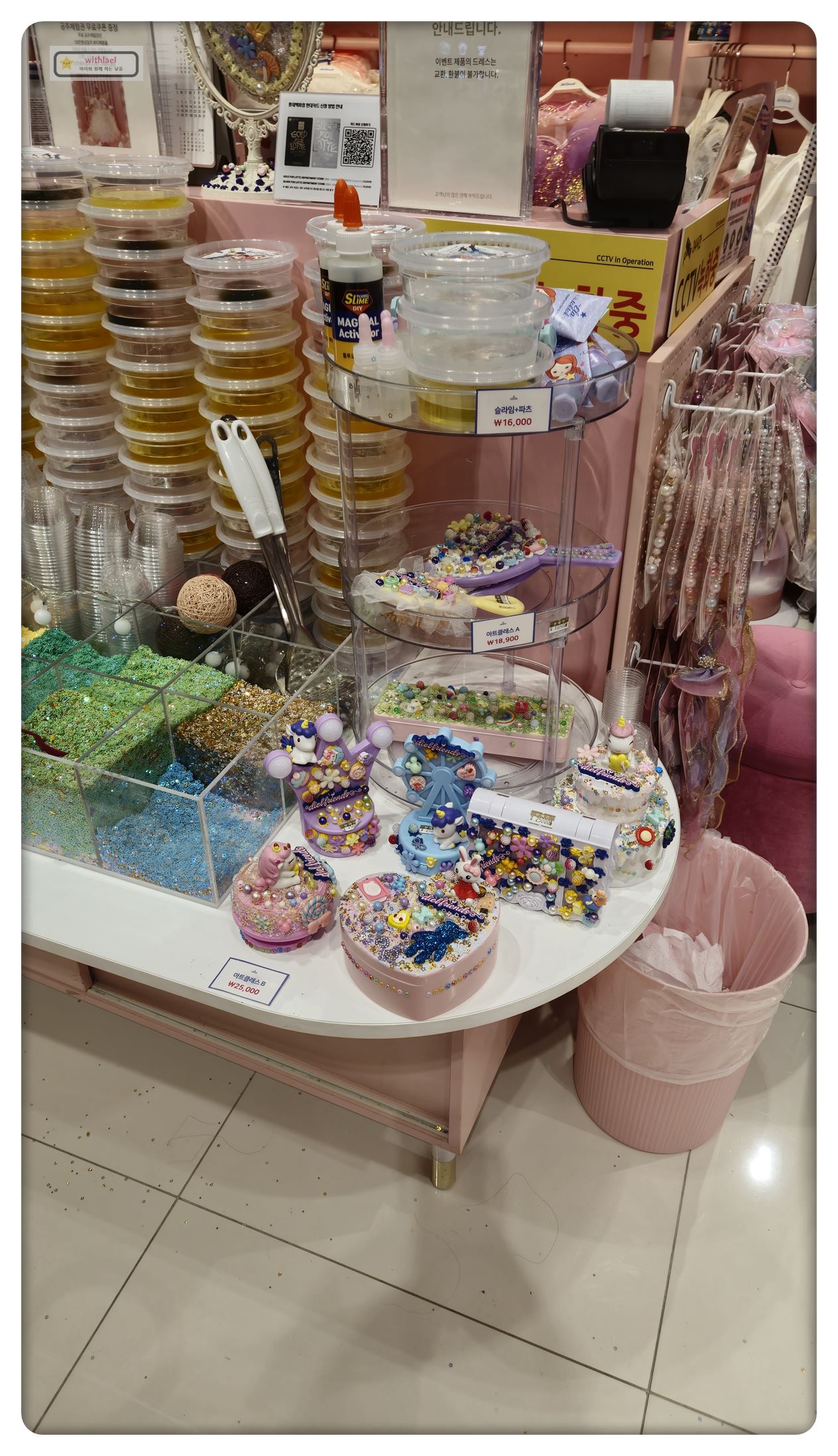 여자 아이들이 좋아하는 핑크, 반짝이, 화장품, 드레스 등 아이의 시선을 끌만한 것들이 너무 많았고, 뭐라도 사지 않으면 나오지 않겠다는 표정으로 저를 쳐다보았습니다.