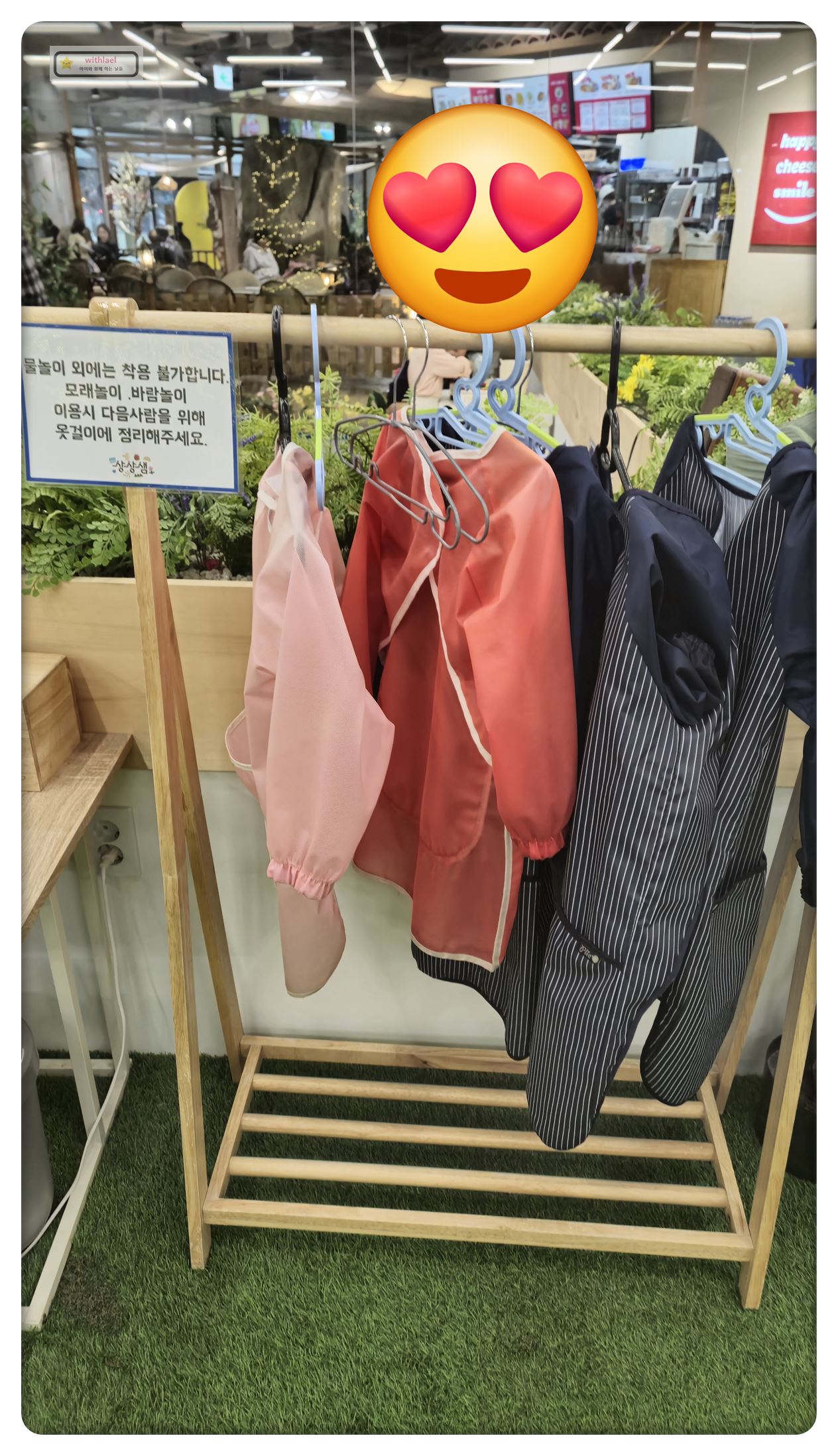 물과 관련된 놀이를 할 때는 옷에 젖기 쉬운데, 가운이 비치되어 있었습니다.