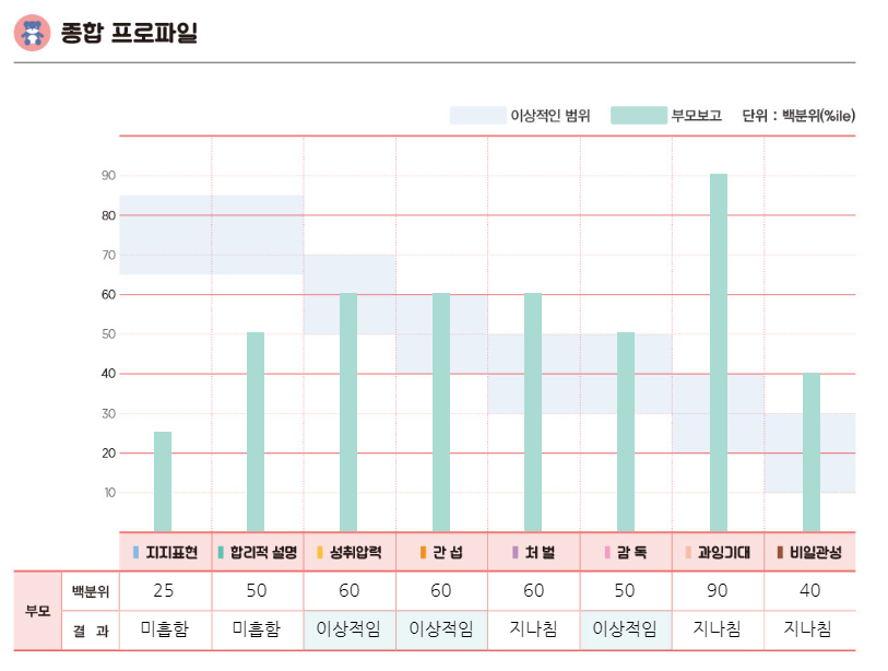 검사결과, 잘하는 건 당연히 아니었고, 제가 이런 사람이었구나.. 그래서 우리 아이가 이렇게 하고 있었구나..라는 것을 느끼게 되며 반성모드로 들어가게 되었습니다.