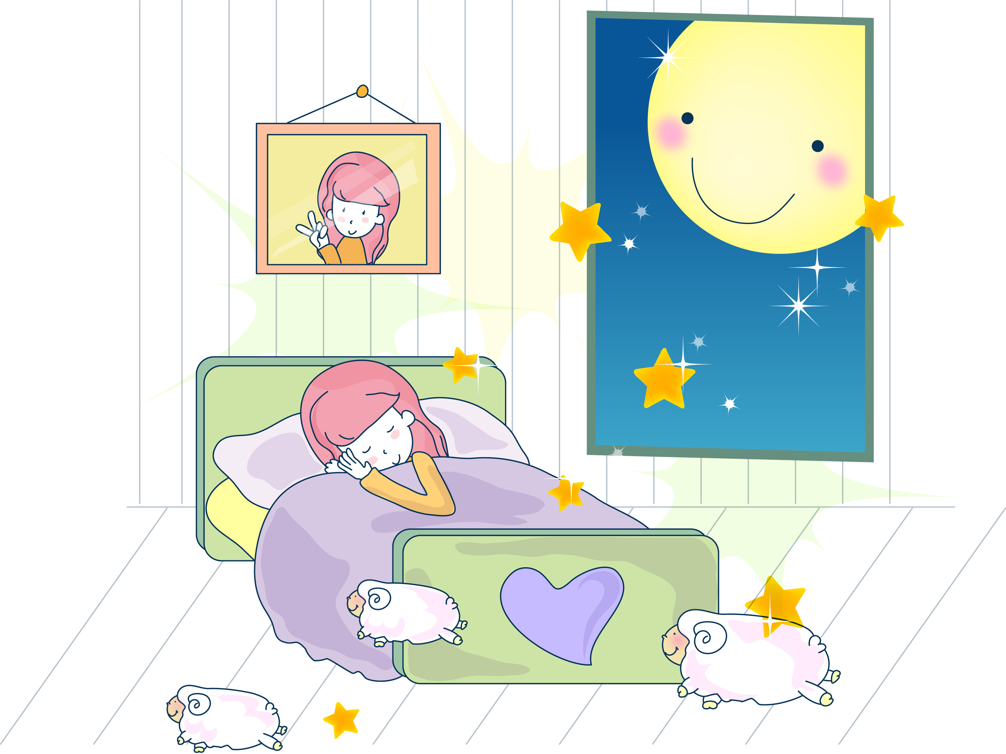 아이는 자신의 방을 마음에 들어 했고, 침대 위에 올려진 분홍분홍한 침구를 보고 혼자 자보겠다고 했습니다.