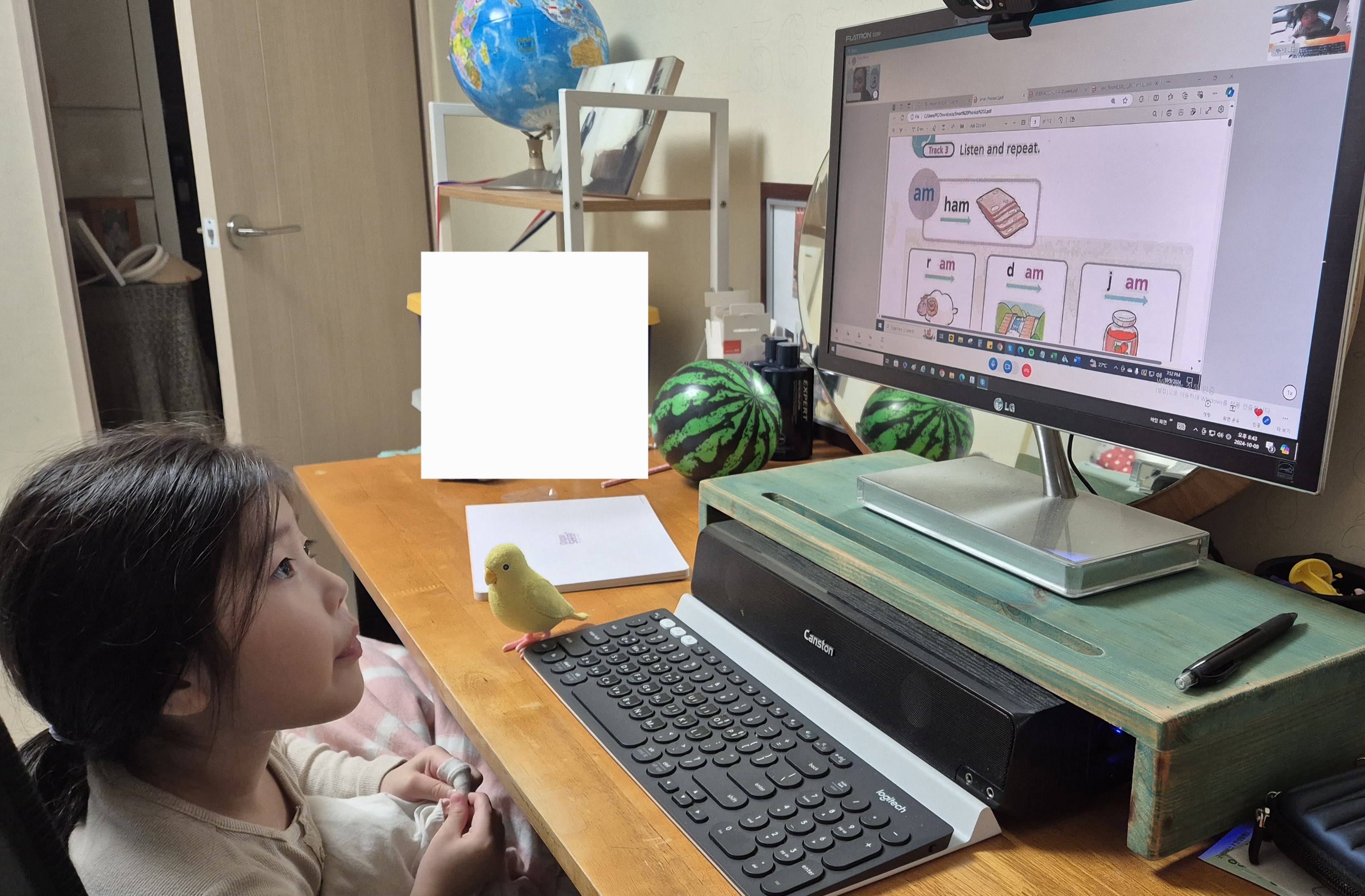 하지만 모니터로 보는 수업이 익숙해지니(2-3회 후) 재밌다고 표현하며 집중하였습니다.(처음에는 반발이 심했습니다.ㅠㅠ)