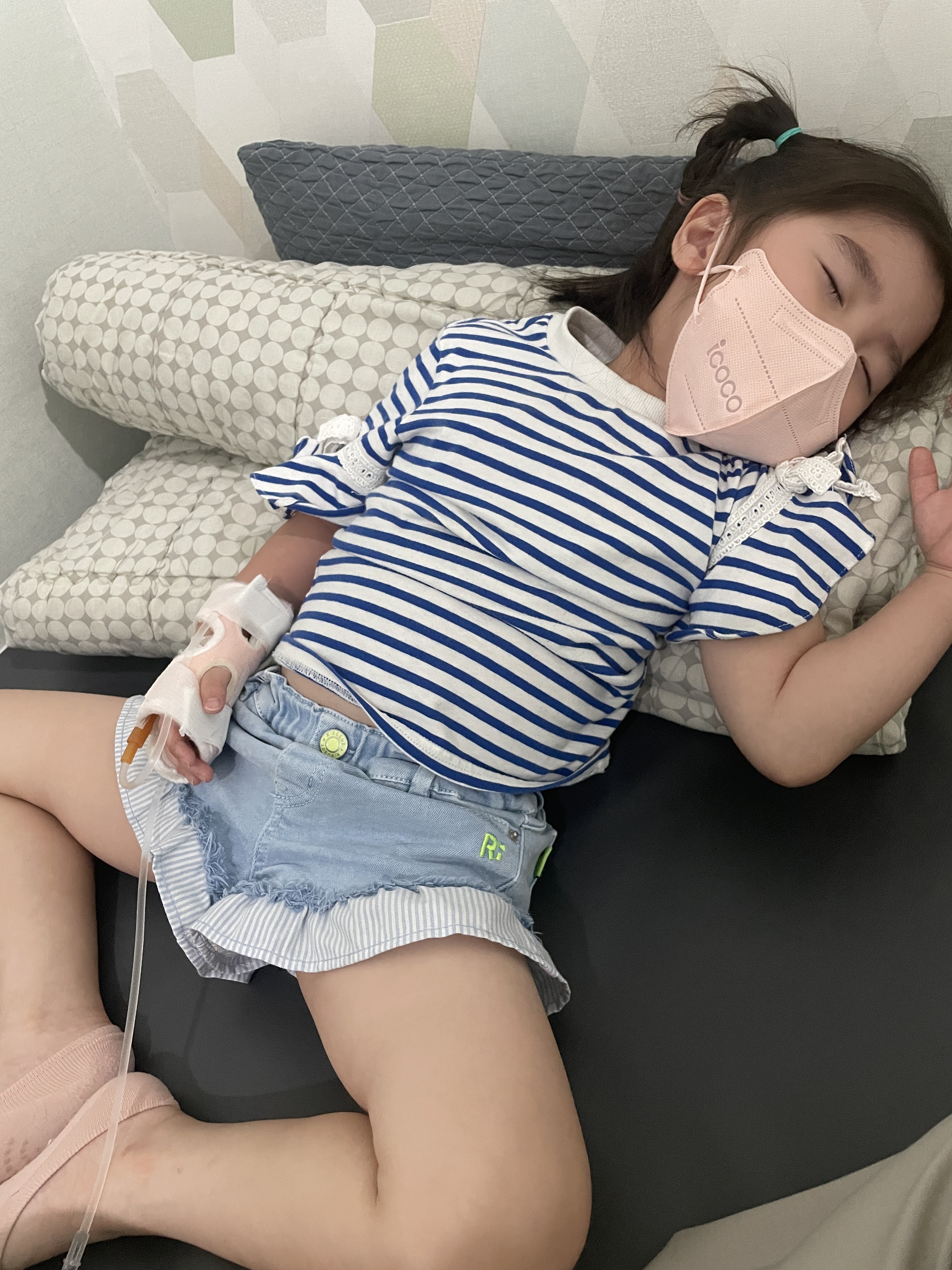 열이나면 고열로 넘어가 수액을 자주 맞았음(수액을 맞는 시간은 대략 3시간)