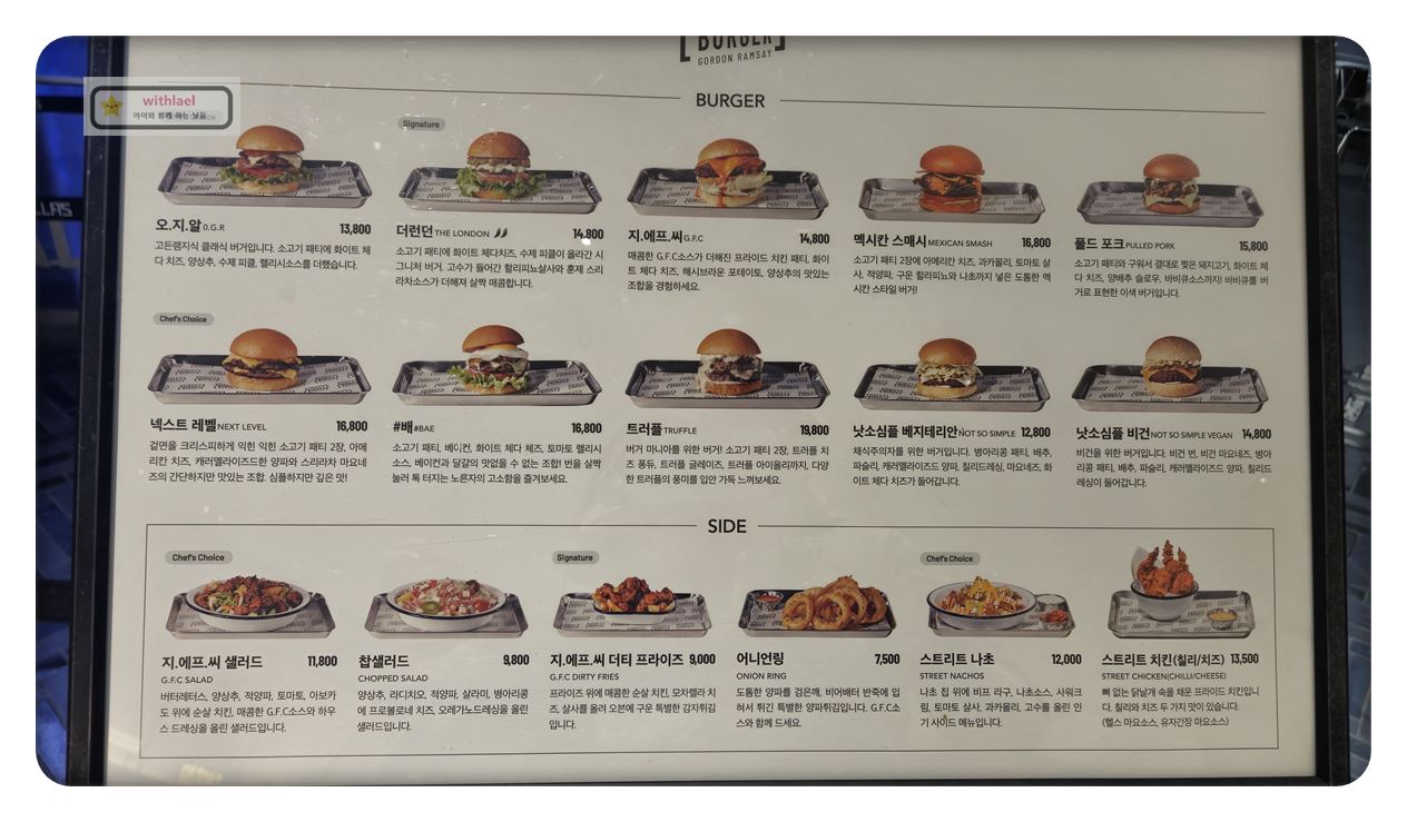 고든램지 스트리트 버거라 해서.. 왠지 제가 방문했던 잠실 롯데월드몰점과 다를 것 같은 느낌이 들어서 메뉴를 확인해 보았고, 역시나 메뉴는 달랐습니다.