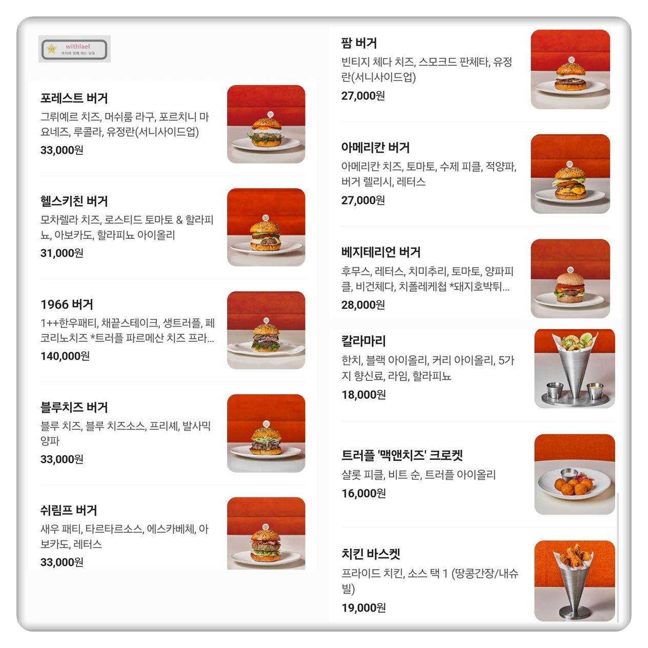 대략 버거는 3만 원 정도 하나 눈에 띄는 버거, 1966 버거가 14만 원입니다.