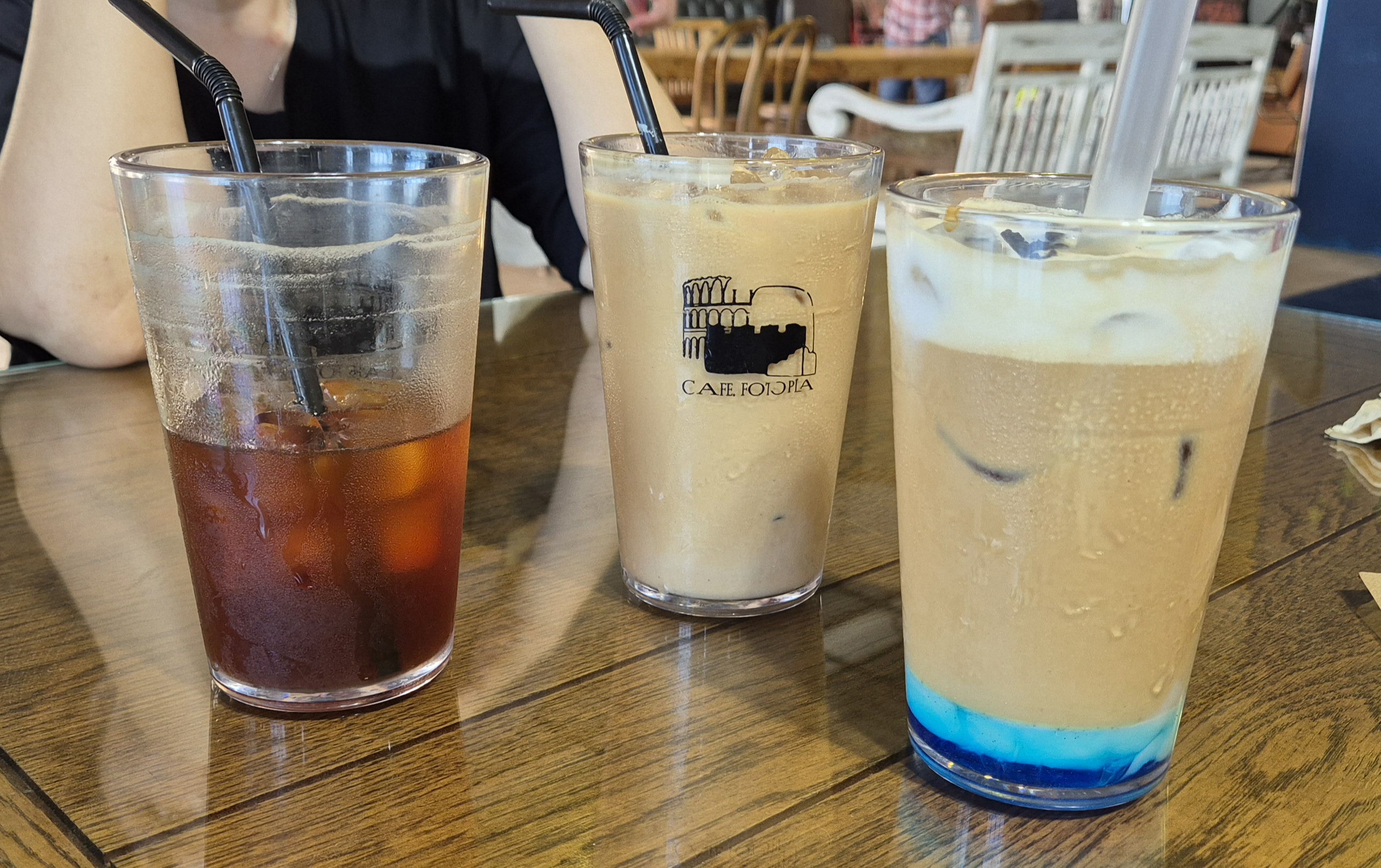 -저희는 아이스 아메리카노, 아이스 카페라테, 어보브 오션(연유라테)을 주문했습니다.