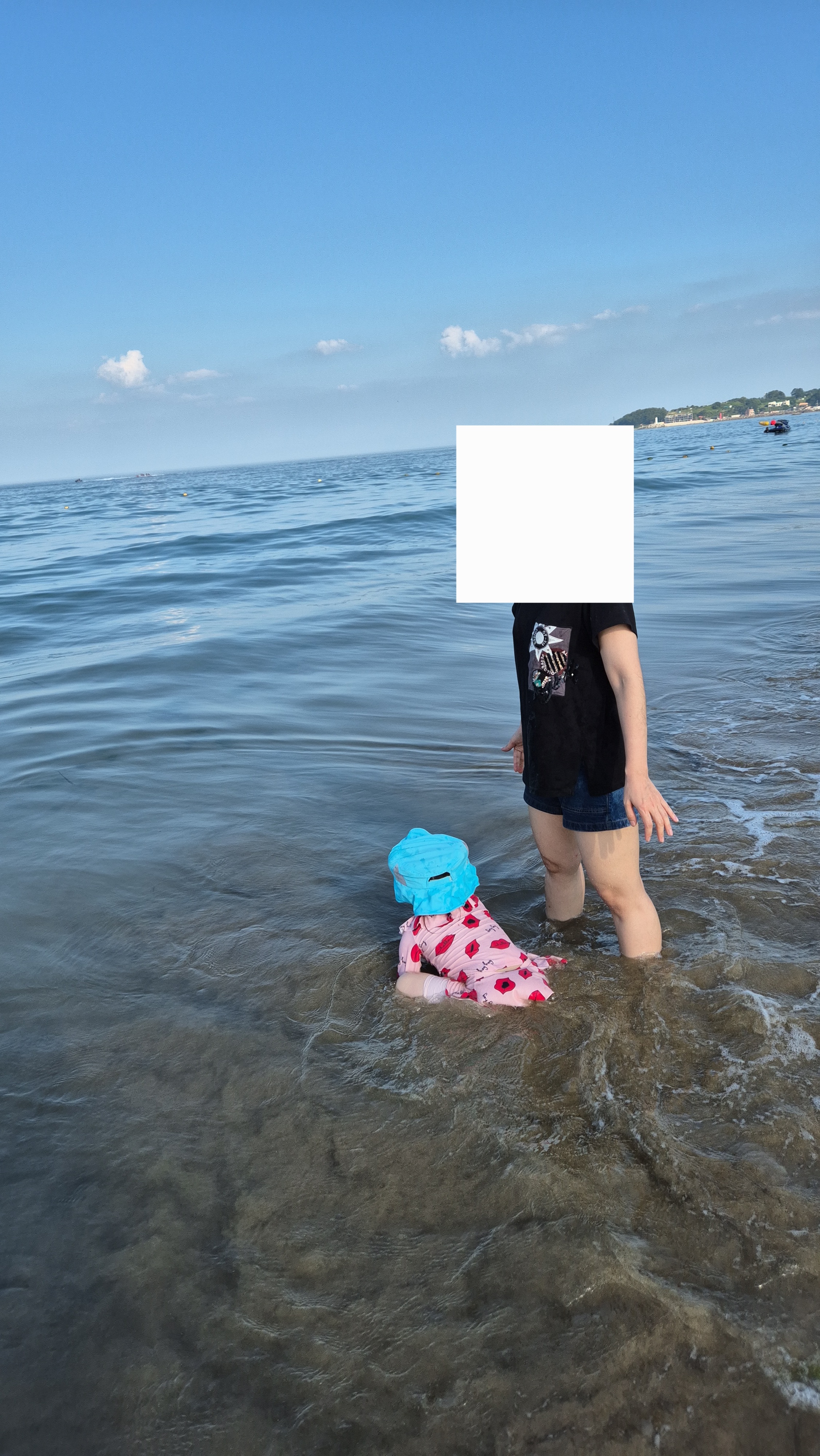 놀던 도 중 아이가 죽은 해파리를 발견해서 무섭다고 오래 놀지는 못했습니다.