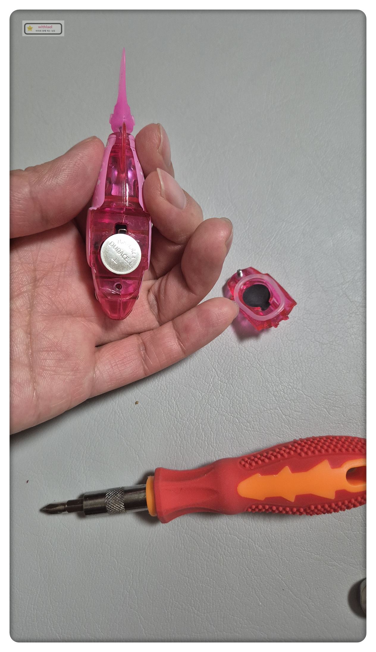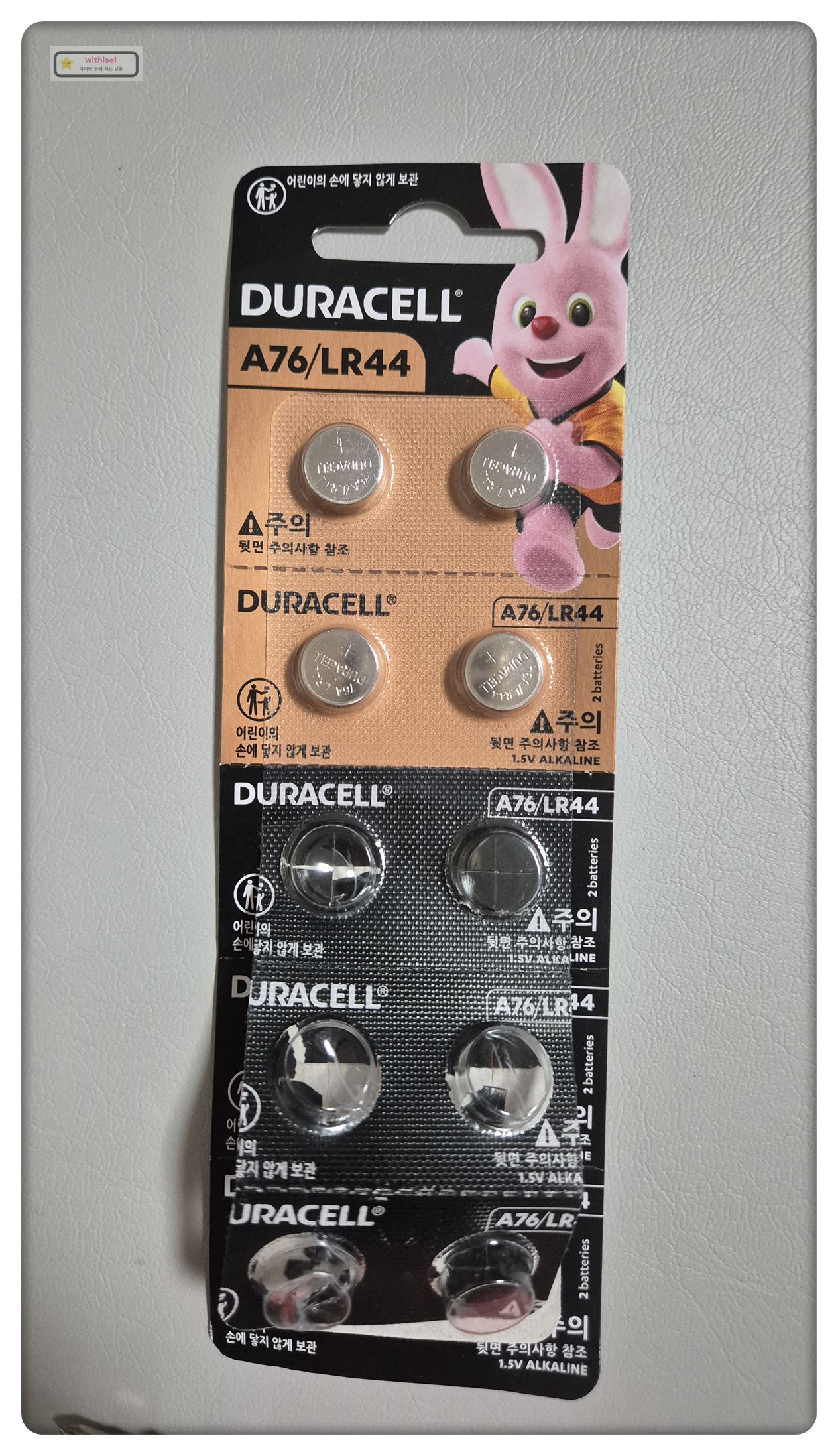 로보피쉬에 들어가는 건전지는 1.5V LR44 버튼셀 건전지 2개입니다.