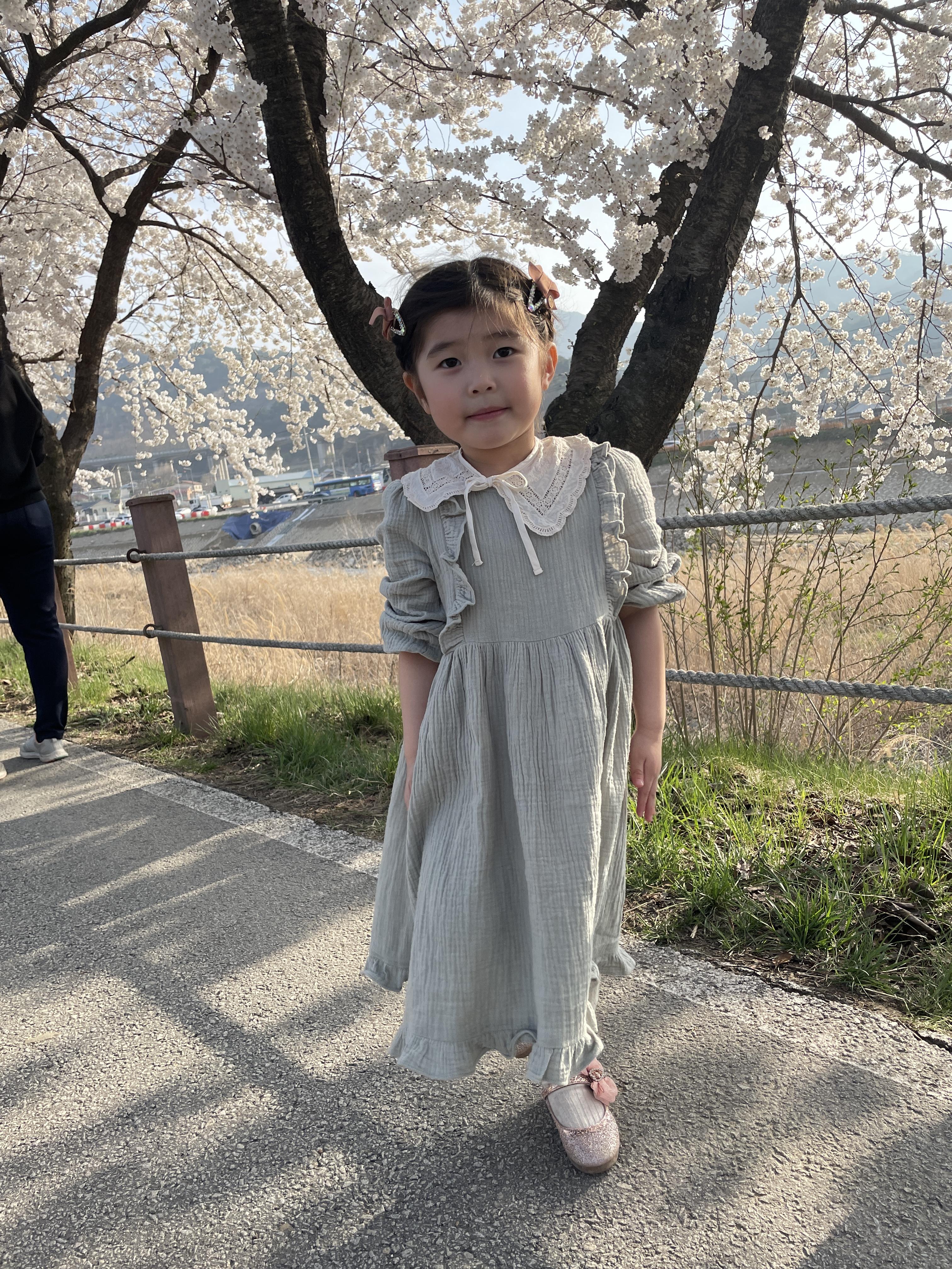 | 지나가던 매장에서 저렴하게 구입한 원피스입니다. 색상이 흰 피부와 잘 받아서 자주 입혔습니다. 사이즈가 작아져도 타이트한 바지를 입힌 후 상의로 입을 수 있습니다. | 낸시 블라우스와 알로하 팬츠입니다. 팬츠에 로아앤 제인 로고가 필기체로 들어가 있어서 고급진 느낌이 듭니다. 이런 스타일의 바지는 크게 나올 때가 있어서, 딱 맞는 사이즈로 선택하시길 추천드립니다.(키 100대 초반에 100사이즈 바지입니다.) |