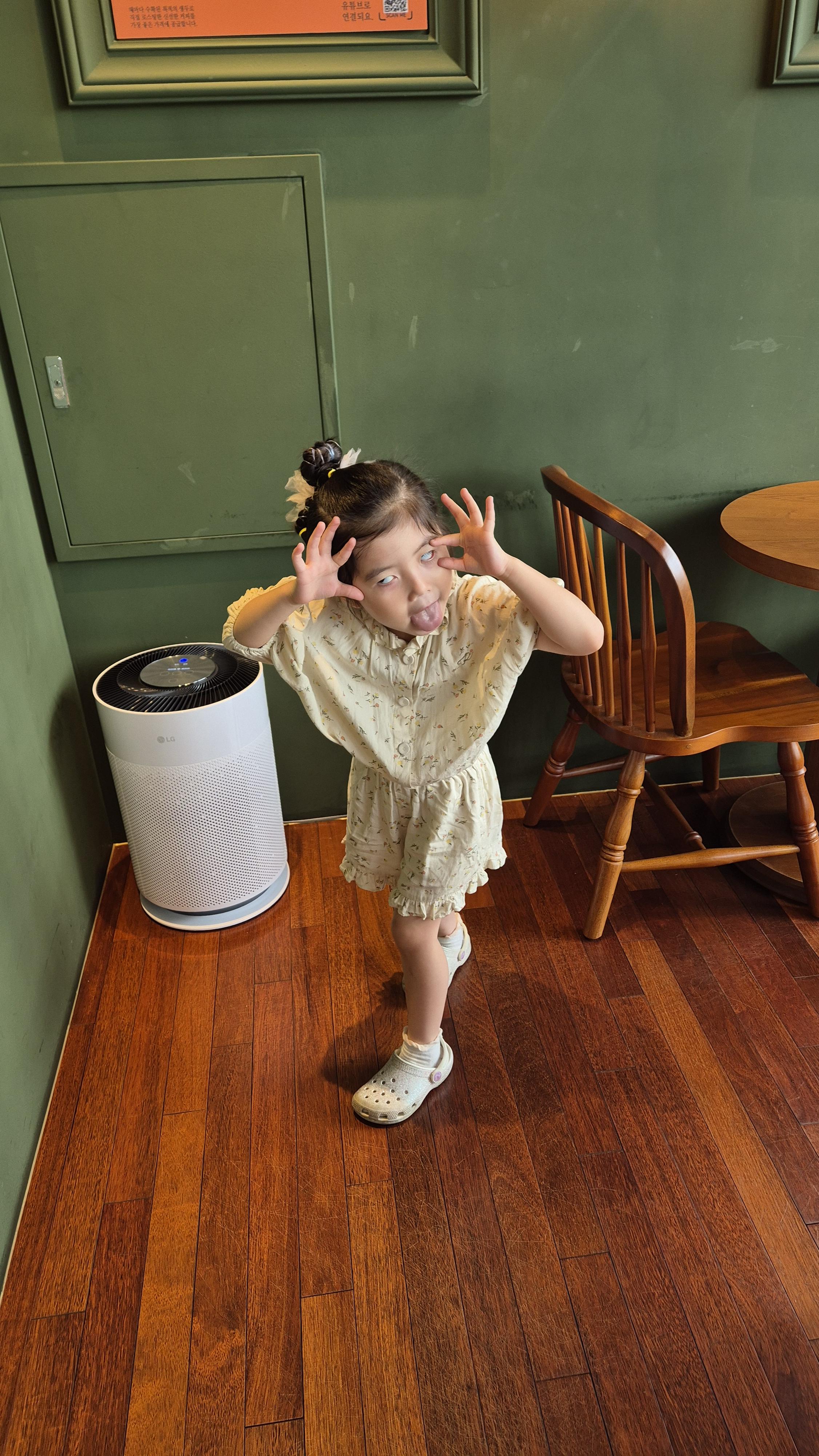 몇 번 예쁜 옷을 입히고 예쁜 머리를 해서 데리고 다니며 칭찬을 받은 후, 예쁜 옷을 입히는 것에 관심이 생겨났습니다.