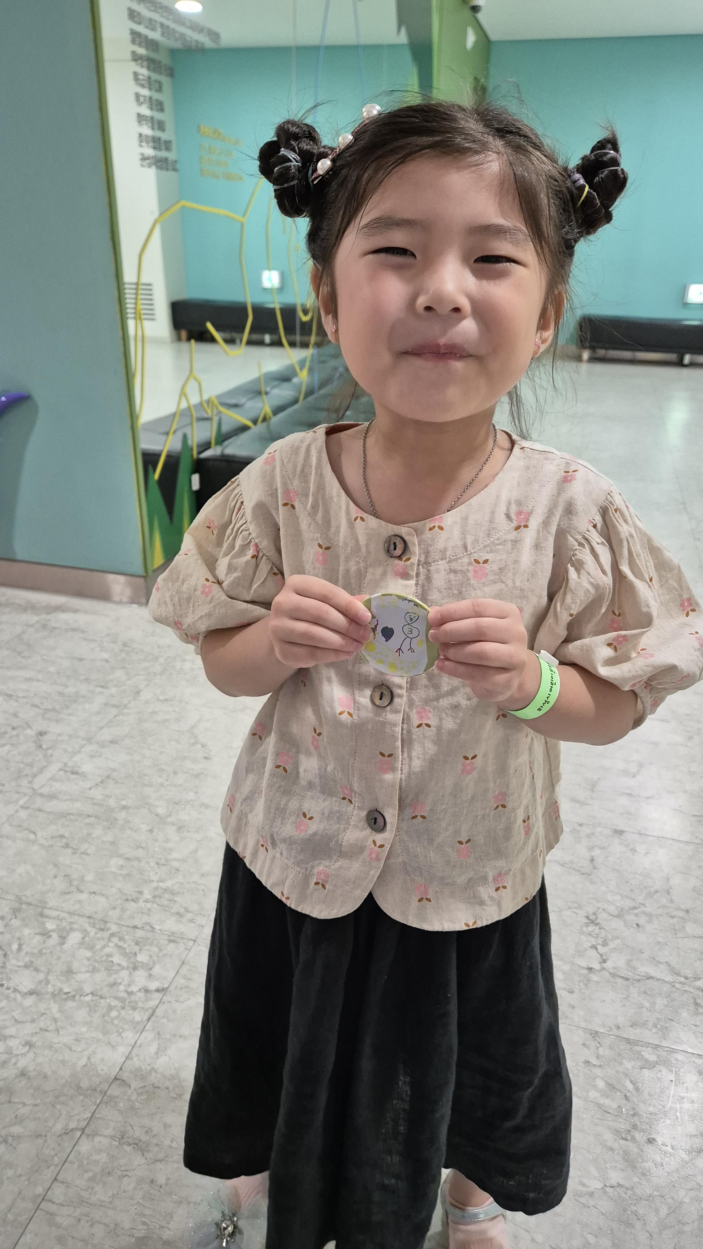 | 콩콩블라우스와 바지입니다. 바지가 짧은 편이라 반바지나 치마는 사이즈를 업 하시는 것을 추천드립니다. | 여름 가디건입니다. 120사이즈를 선택했더니 이 옷은 큰 느낌이 많이 듭니다. 하의를 짧은 치마로 입히면 단정한 느낌이 듭니다. |