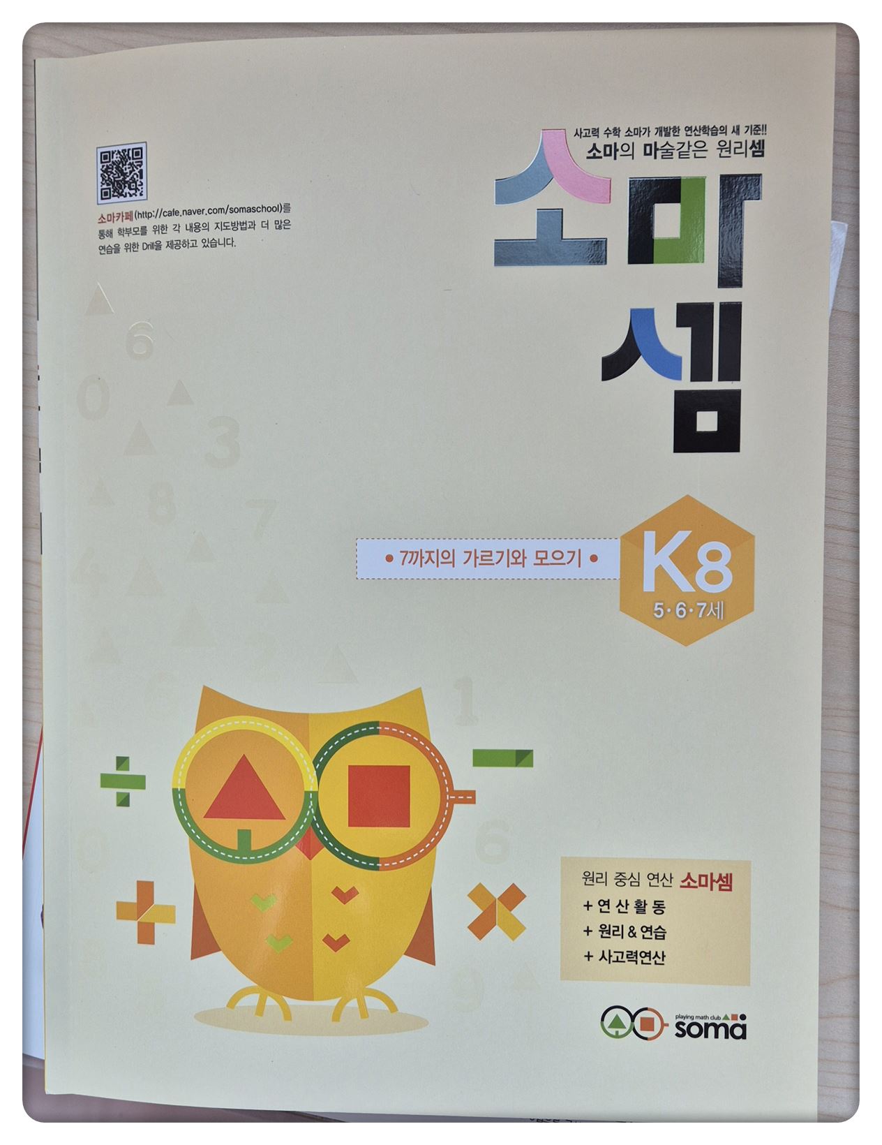 서점에서 유아교재를 전부 다 살펴본 결과 소마셈 교재가 연산을 다양하게 접할 수 있어 좋을 것 같았습니다.