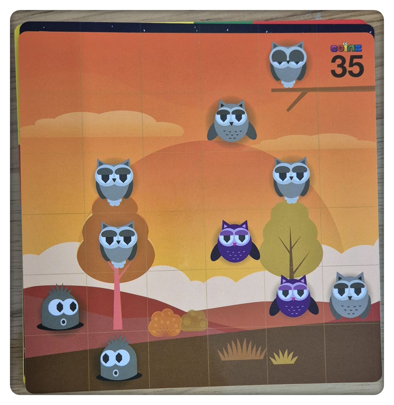 코잉스는 그림 카드에 색깔 블록 9개를 채워 놓는 게임입니다.